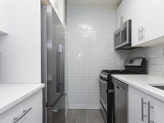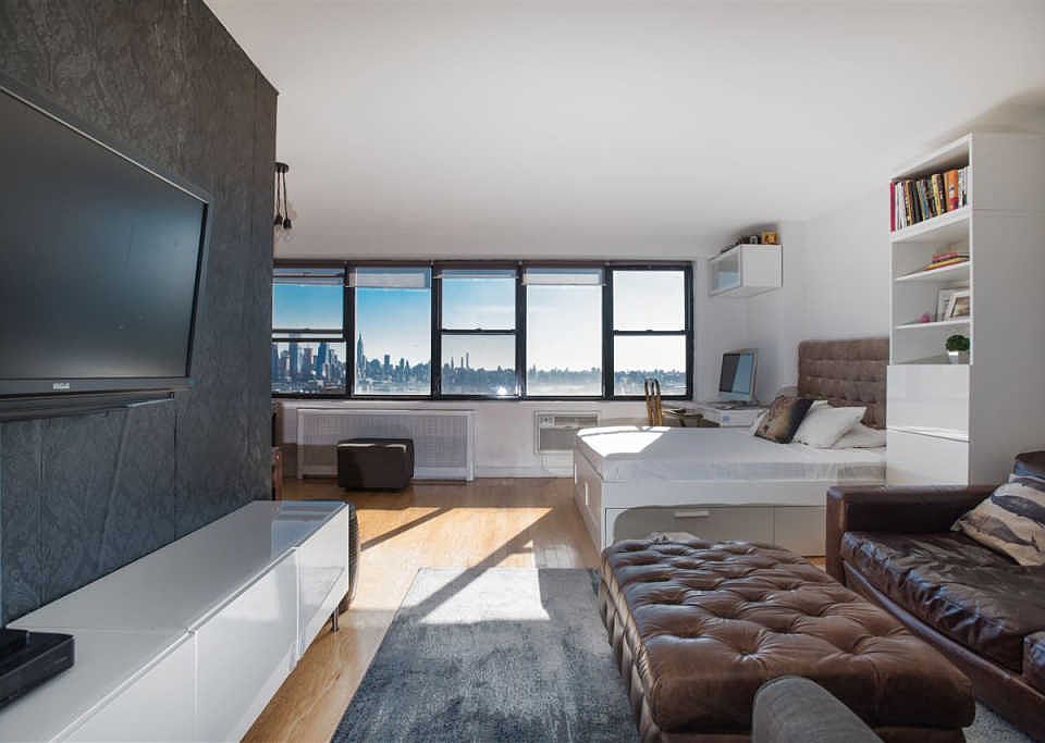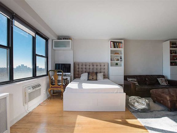Amazing New York City Views! 15th Floor! Completely renovated Oversized Studio with sleeping alcove features: Hardwood floors throughout Quartz Countertops, stainless steel appliances, Italian white cabinets, under mount sink & ample closet space. Amenities feature Shuttle to the path, Gym, 24-hour Doorman, Game/community/Laundry room. Heat, Gas & water included! Parking available for $150 Per month. Pets case-by-case