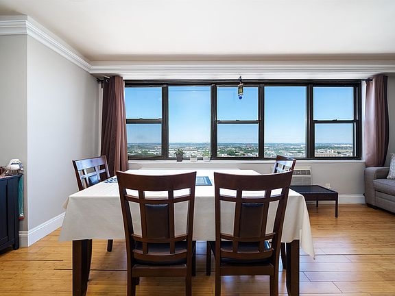 Spacious 2 bedroom corner unit, with a fully renovated balcony where you'll enjoy views of Manhattan and stunning sunsets, at The Lenox, a full-service building just blocks from Washington Park in Union City. This 15th floor unit features hardwood flooring throughout, crown and base moldings, and enough closet space for all your organizational goals! The kitchen is home to stainless steel appliances, granite countertops, and maple wood cabinets. The large living/dining area is a perfect place to enjoy panoramic sunset views. The oversized primary bedroom boasts two large closets and access to your private balcony. The second bedroom is spacious and features partial city views. Heat, hot water, gas, and building amenities are all included in the rent. Unit is FIOS-ready. The Lenox offers 24 hour concierge service, a private building shuttle to the Hoboken PATH, rental parking on-site, a fitness center, resident lounge, laundry room, elevators, and an outdoor grill area. Close to Washington Park, the Congress Street Light Rail, Downtown Union City, Jersey City Heights, and more!