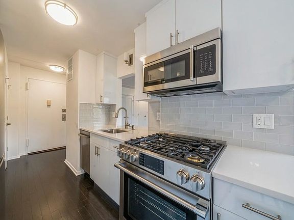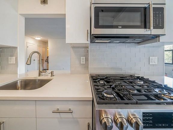 Closets Abound! Best floorpan at the Lenox. Enjoy this newly renovated one bedroom unit with dining alcove at the Lenox overlooking a tree lined street. The pass through kitchen with breakfast bar features white cabinets, pantry, stainless steel Beko appliances, and quartz countertops. The living room includes an abundance of storage featuring three huge closets. The large master bedroom has a walk in closet and balcony. A Bosch washer/dryer is included in the unit. Maintenance includes heat, hot water, & cooking gas. The Lenox is a full service building and includes a 24hr doorman, shuttle service to Hoboken Path during morning and evening rush hours, Fitness Center, Residence lounge, and Outdoor Lounge with bbq area. Parking is available for lease. Located in the up and coming downtown Union City area neighboring Jersey City Heights and Hoboken. This condo qualifies for a 5 year tax abatement. Come see this wonderful home!