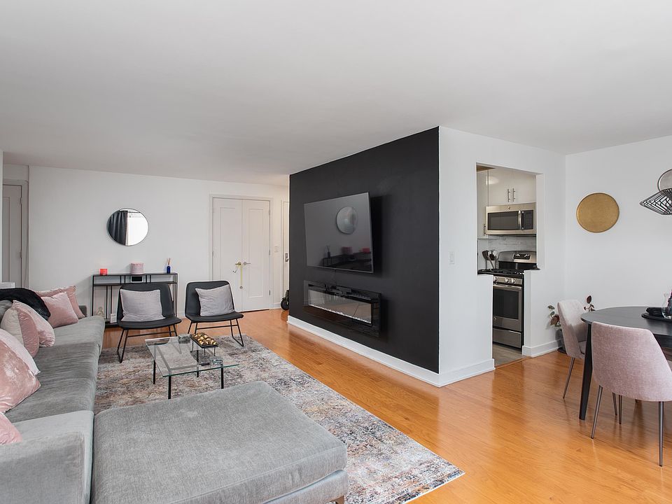 Welcome to Residence 320. Completely renovated Oversized 1 bedroom with Laundry in the unit! Home features: Large Balcony, Hardwood floors throughout, designated dining room, Quartz Countertops, Fisher & Paykel refrigerator, Italian white cabinets, under mount sink, ample closet space and electric fireplace! Amenities feature: Shuttle to path, Gym, 24 hour Doorman, Game/community/Laundry room. Heat, Gas & water included in the maintenance fee. Pet Friendly! Parking available for additional fee FCFS.