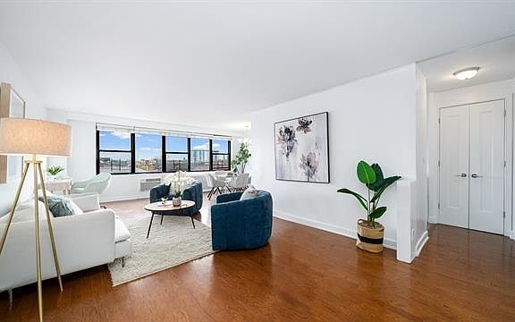 Modern convenience meets contemporary design, nestled near Washington Park in lovely Union City. Enjoy sophisticated urban living in this well-appointed one bedroom/ one bath home with sweeping NYC views from window to window. Every detail has been thoughtfully considered in this custom built & freshly painted home which features stainless steel appliances, hardwood floors throughout, ample closet space, designated dining area, and a beautifully renovated kitchen and bath. This distinctive home boasts 926 square feet of open living space and includes myriad amenities for you to enjoy. 24 concierge service, elevator building, opulent lobby, expansive fitness area, game/party room, large washer/dryer room, heat & hot water included in maintenance fees, and parking on site for $150 (available and transferable). You can have it all at a very attractive price!