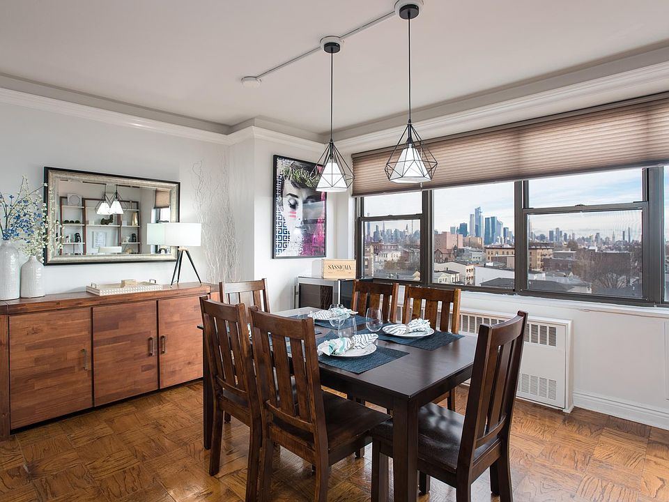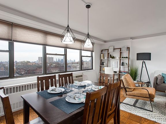 Welcome to the Lenox, Union City's premiere high rise located downtown bordering Jersey City Heights and Hoboken. This 2 bed 1 bath that is being rented fully furnished only boast just under 1100 sq ft with unobstructed views of the NYC Skyline. Hardwood floors throughout, stainless steel appliances, and ample closet space. Stacked in unit washer and dryer and also common laundry located on the ground floor with ample supply of washers and dryers for your convenience. 24 hr security and doorman, includes shuttle service to Hoboken path for convenient commute to NYC., gym, game room, and shops on premises. Located 2 blocks from one of the best parks in Hudson County. Available immediately, will consider all lease lengths. Call and schedule your appointment today. One month broker fee paid by tenant