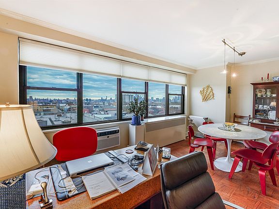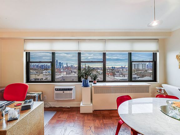 This two-bedroom condominium on the ninth floor of the Lenox offers sweeping views of the Manhattan skyline, from Columbus Circle, past the Empire State Building and down to the Battery. This is a full-service building packed with amenities:24-hour concierge, shuttle to PATH, fitness center, residents lounge, outdoor BBQ area and large laundry room. This home shows pride of ownership throughout. The L-shaped living room and dining area face a wall of windows with that ever-changing view. The fully updated kitchen features smart dark gray quartz countertops and translucent subway tile backsplash. The fully renovated bathroom has marble tile and quarter-inch glass doors surrounding the tub/shower. There are period correct and beautiful refinished parquet flooring, newer paint throughout, Hunter Douglas insulated shades and plantation shutters over the windows included, solid wood doors, new light fixtures, and a newly installed 12,000 B.T.U. air-conditioner. Also boasts abundant storage: five closets with floor-to-ceiling doors. The building is pet-friendly: Parking is available for $200 a month and is pet-friendly. Lastly to note is the HOA includes along with the amenities your Gas, Water & Heat, minimizing your overall expenses! The Lenox is the perfect urban oasis waiting for you to call it home. Call now for more information or to schedule a private tour.