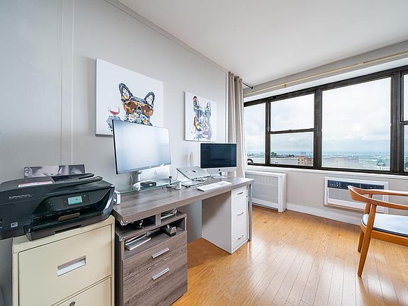 Spacious 1 bed with bonus den & balcony at The Lenox, a full amenity building just blocks from Washington Park in Union City. You won't find an identical unit, as the owners custom created a den off the kitchen, tucked behind a stylish barn door, which beautifully accommodates a nursery or office. The kitchen features white high-gloss, soft close cabinetry, GE stainless steel appliances (including a brand new dishwasher & fridge), and a spacious pantry for storage. The large living/dining area is a perfect place to enjoy panoramic sunset views. The oversized primary bedroom features a large closet and access to your private balcony. Additional upgrades include hardwood floors throughout, a brand new WiFi/Bluetooth controlled Friedrich A/C, kitchen garbage disposal, and modernized ductless shower fan. The Lenox offers 24 hours concierge service, a private building shuttle to the Hoboken PATH, rental parking on-site, a fitness center, resident lounge, laundry room, elevators, and an outdoor grill area. Close to Washington Park, the Congress Street Light Rail, Downtown Union City, Jersey City Heights, transportation to NYC, and more! 1 month brokers fee paid by tenant. Heat & hot water included in rent. Parking available for an additional fee directly through Tower Management. Pets at landlord's discretion.