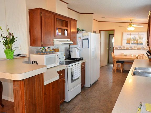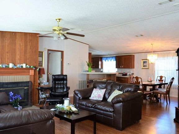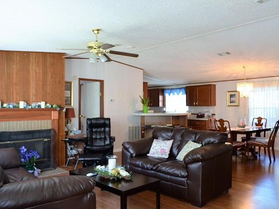 Very nice well maintained four bedroom home in a gated community. Open floor plan with a living room that opens up to the dining room. Large kitchen with eatin space. Master bedroom with two separate walk in closets. Master bathroon has large tub and separate shower. Screened in porch over with water front views. Covered parking and a ramp to back door. Community pool, childrens play area, clubhouse, and gazebo. HOA fee includes lot rent , water, landscaping, use of club facilities, and sewer. Buyer must fill out application with Crystal Springs Estates management