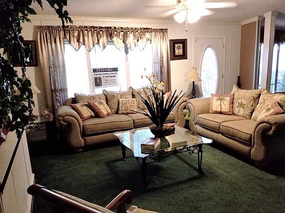 Welcome home! Immaculate 4BR, 2BA, 2167 sq. ft. double wide mobile home on rented corner lot in beautiful gated Crystal Springs Estates mobile home community. Formal living room with fireplace and built in shelving. Additional living room with sliding glass door leading to a fenced Stone walk area. Separate dining room with columns. Beautiful eat in kitchen with lots of cabinets, smooth top stove, built in microwave, refrigerator and breakfast bar that overlooks huge living room. Huge master bedroom with walk in closet, deluxe master bath with garden tub and separate shower, triple glamour vanity with Hollywood lights and 2 sinks. Plantation shutters in master bath. 2nd and 3rd bedrooms are extra large with walk in closet, 4th bedroom with double closet. Beautiful landscaped corner lot with palm trees & rose bushes. Community Amenities Business center Club house Fitness center Gated entry Gazebo Lawn Picnic area Playground Trail Water feature Pet area Swimming pool Great Neighbors Call for more information at 904-234-0261 904-982-2009