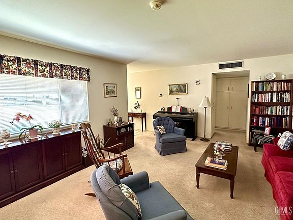 Beautifully maintained home in desirable Kern City (55+ community) situated on the golf course. 2 bedrooms, 2 bathrooms and 1 car attached garage. Home has two living areas and spacious kitchen. Don't miss the beautiful backyard with a covered patio, extra storage and gorgeous view of the golf course.