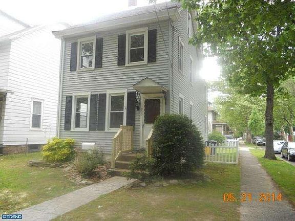 Delightful Victorian within walking distance of Main Street Riverton, the River Line Station and the Delaware River. This home has a large living room with built in book shelves, a formal dining room with an updated light fixture. The remodeled kitchen has a lovely back splash, newer oak cabinets and new appliances. The main floor laundry room has a powder room mext to it as well. The 2nd floor has 3 generous sized bedrooms and a full bath with an updated vanity and sink. The attic is finished and provides a huge bonus room that could be used as a family room, office or playroom. The back yard is fenced and has a stamped concrete patio for those relaxing evenings. The detached garage has a new door and plenty of room for both a car and storage.