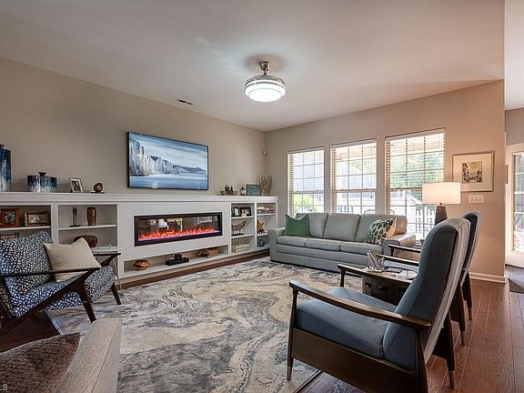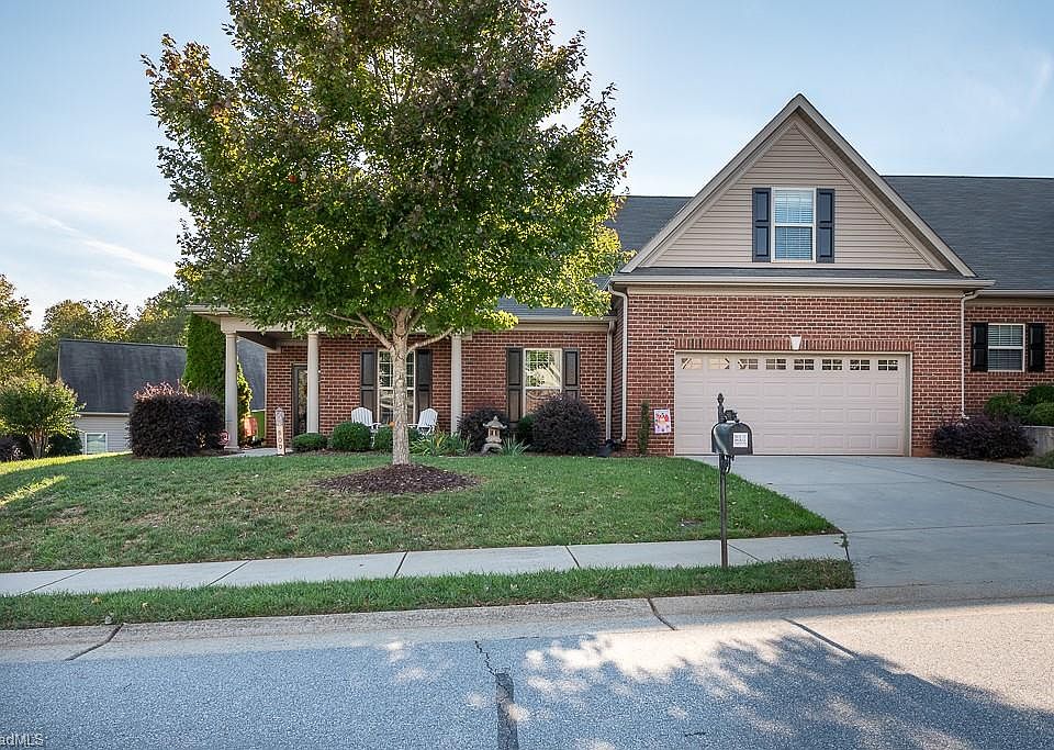 MUST SEE this brick, one-level, 3 bedroom townhouse with a large upper level bonus rooom that offers comfort and convenience. This townhouse boasts a welcoming front porch that leads you into the very open living area with so many wow amenities such as the gorgeous electric fireplace in the living room, a large work island in the kitchen, and also the wine/beverage refrigerator in addition to the other updated kitchen appliances. The primary bedroom suite has a tray ceiling and a walk in shower. The double garage has lots of shelving for storage. The upper level bonus room is very generous sized and offers lot of versatility for whatever your needs might be. Great location near I-40, shopping, and restaurants and this neighborhood is a great for walking. You won't want to miss this one!