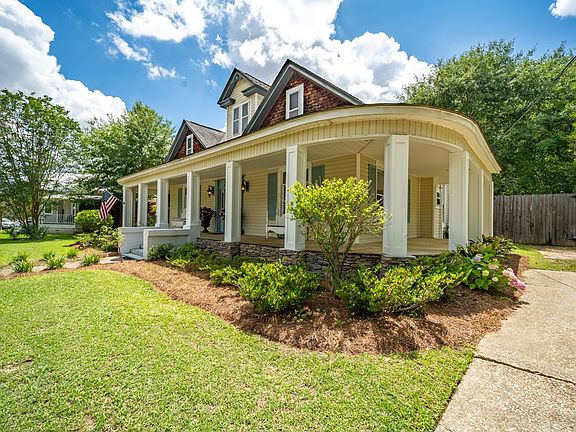 This beautiful updated 1920's home with a wraparound front porch and other elegant details in this home add to its charming character and story. The hardwood floors, towering ceilings, grandiose foyer, leaded beveled glass front windows, custom kitchen with stainless steel appliances, gas Wolfe cooktop, double oven, and an island with an undercounter wine cooler in this home screams elegant. The upstairs bedroom is spacious and secluded with a fireplace. The spacious backyard features a screened patio and several established trees, making it ideal for outdoor gatherings. The home's location is also appealing, as it is one block from the high school and a short walk down the city sidewalks to the center of town in Headland. Come tour this historic house and you will be enchanted by its special charisma and personality.