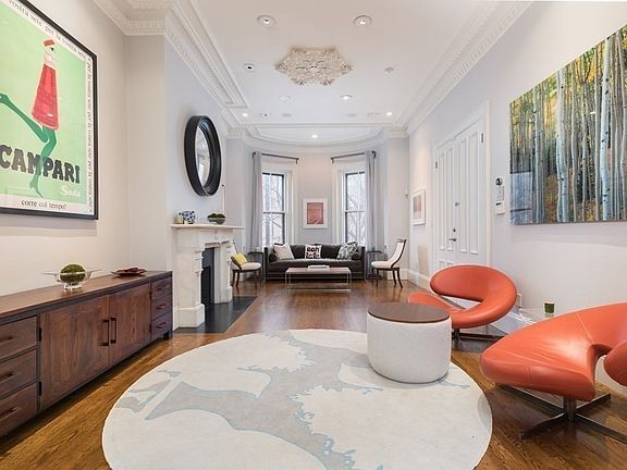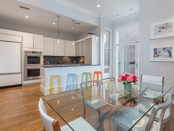 Grand parlor level w/wood burning original marble fireplace, soaring ceilings & stunning original detail welcomes you into this spacious parlor to garden triplex which offers the perfect juxtaposition of old & new. Poggenphol kitchen w/SubZero/Wolf double ovens, stone countertops, peninsula w/ stool seating for 4 & is open to generous dining area. Natural light floods the kitchen/dining area via sunny south facing glass filled bay w/access to rear deck overlooking large private patio. Powder room & coat closet finish this floor. Middle/street level w/ 2 beds, including king sized primary + guest bedroom, each w/en-suite bathroom. Primary bath w/infinity edge tub & large limestone shower as well as double sink vanity. Walk in closet at primary & mudroom entry complete this floor. Family room, wet bar, full bath, endless storage & an additional guest room can be found on the garden level. Over-sized private, double-tiered patio. Seller to pay for 1 year of rental parking-See agent.