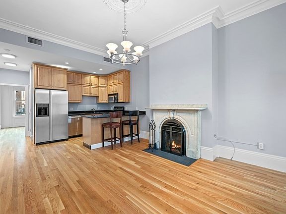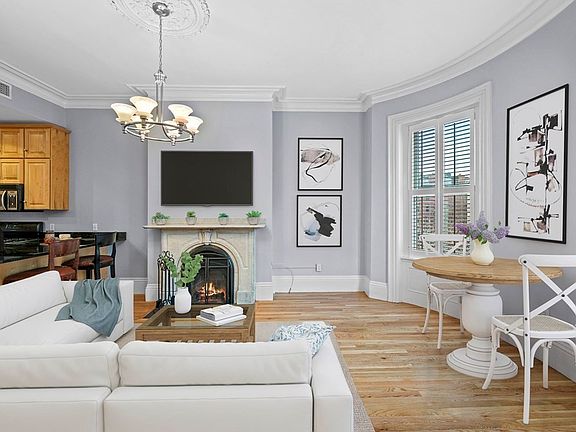 A classic condominium in a traditional brownstone setting, this is a 1 bedroom with a full 2nd office/den that could easily double as a bedroom. Be dazzled by Boston skyline views and a bright, airy space nestled in the vibrant South End. Dine nearby at Petit Robert or SRV, or easily commute with close proximity to the Prudential T. Soaring 10 ft ceilings, lush crown moldings, sleek hardwood floors, central AC, recessed lighting and two marble fireplace surrounds are all a perfect combination of historic elegance and modern amenities. Upon entrance one is struck by the generous living space, and the bay window overlooking Columbus Ave adds depth to the space. A fully applianced kitchen with stainless steel appliances, sleek granite counters with overhang for casual eating makes for gracious entertaining. Floor to ceiling storage in the den! South facing bedroom with oversized closet leads to a luxurious ensuite bath with a walk in glass shower. In unit W/D and pet friendly assoc.