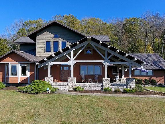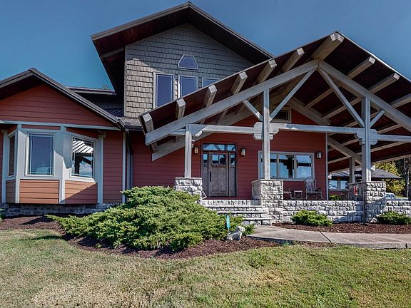 Built for year-round enjoyment inside & out. Timberframe type home. Hardie Board & engineered stone.56 acres. Fenced for livestock in front. Trails into the woods, breathtaking views & sunsets. High-speed internet. Awesome shop building w/equipment storage & hayloft. Sellers work from home. Please show to qualified/preapproved buyers. 24-hour notice requested. Matterport tour, drone video, floor plan all attached to this listing.