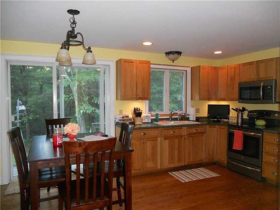 Very Nice 7 room Country cape sits on 5+ private acres. Great layout ! Double living room,chimney for wood stove. open kitchen w/sliders to deck, 3 bed, 2 baths/whirlpool, new hardwood floors, 24 x 24 master bed w/ den . 2 car garage and more!!!