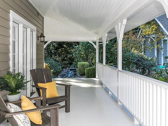 Gorgeous fairytale home enjoying a sun drenched setting among majestic redwoods and seasonal creek. Drive through the artsy custom crafted gates and long sweeping driveway. The Cape Cod style home has incredibly charming curb appeal featuring gabled dormers and wrap around porch. Traditional floorplan comprises formal entry, living room with fireplace, formal dining, farmhouse style kitchen with rustic cabinetry, granite counters and center island. Dramatic great room with soaring ceilings, galleried landing and wall of windows flooding the room with natural light. Master suite on ground floor with luxurious master bath, French doors to covered side porch. 3 further beds & hall bath on 2nd floor. Conditioned wine cellar & unfinished basement offers potential additional living space. Set on 5 acres, beautifully landscaped with lawns, waterfall feature, cute dog house & run, kids play area. Explore the redwood forest in your own back yard. Only 3 miles/9mins to Hwy 17, <20mins to LG