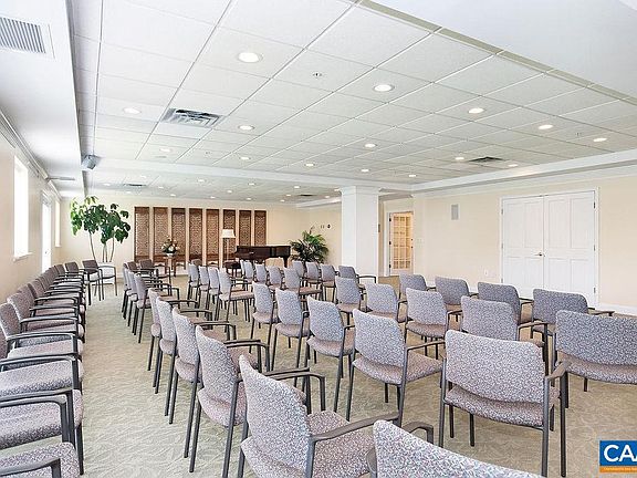 Freshly painted 4th floor University Village condo featuring 2 BR/2 BA+den. Located on the end, convenient to the elevators, this west facing home has Blue Ridge Mt views from every window. This elegant, low maintenance home has a dedicated garage parking spot and individual secure storage space. Lovely, private balcony. Condo fee covers: heating, cooling, electricity, water, sewer, trash, basic cable, all community amenities, including year-round heated indoor 75'pool, fitness rooms, library, art studio, LYFT services & more. Fine dining is available M-F at resident's option. Heating: gas fired hydronic forced air system central to the building/ an individual air handler in eachunit. Cooling comes from master chiller. This active 55+ community fosters engagement through interest groups, speakers, social events. Minutes from all that Charlottesville offers. Small pets allowed.