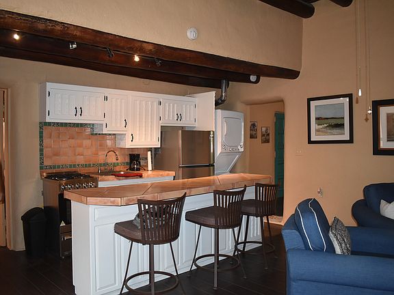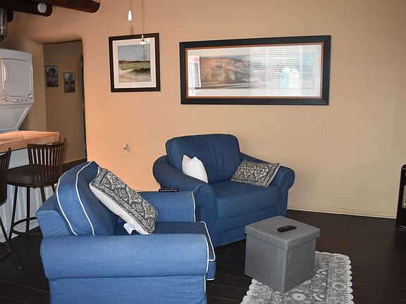Experience the charm of our two-bedroom fully-furnished condo, a preserved original adobe construction, nestled in a country-like setting. This unique retreat features room to paint, perfect for creative inspiration, private off-street parking. Furnished 2br/1ba condo in four complex. Efficient open floor plan, kiva fireplace(s), sky lights provide natural light and privacy. New gas stove, new fridge Washer/dryer in unit. Wifi, Xfinity Available now 6 month lease with possible option for month to month after that. $2500/mo, utilities included. $2500/security deposit upon move in Xfinity is provided, tenant responsible for added channels and stations. Non smoking inside, utilities included in rent. Pet is negotiable, limited to 1 small dog.
