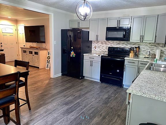 Totally remodeled brick home, 3 bedroom 1 1/2 bath just on the out skirts of town with only a 3 minute drive to the court square. Paved driveway. All new hardware, light fixtures, countertops, cabinets, exterior doors, and interior doors, flooring, new windows, new roof, new central unit, and septic tank just pumped out.