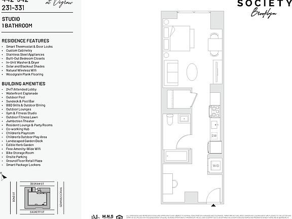 Amazing One Bedroom Available Now! Now Offering 1.2 Months Complimentary on a 13.2 Month Term Welcome to Society Brooklyn! Modern Elegance with Iconic Views on Brooklyn's newest Waterfront Esplanade! Discover a new level of luxury at Society Brooklyn, where urban sophistication meets modern comfort along Brooklyn's newest waterfront esplanade. Nestled at the intersection of Carroll Gardens and Park Slope, our residences offer an unparalleled lifestyle designed for those who crave both style and substance. Our thoughtfully crafted residences blend sleek, modern finishes with warm, livable design, perfecting the balance between elevated aesthetics and everyday functionality. Expansive windows flood each home with natural light, while select units offer breathtaking skyline and canal views that bring the beauty of Brooklyn right into your living room. Residences feature: Spacious open concept layouts Custom black oak kitchen with premium stainless-steel appliances LG in-unit washer/dryer Oversized windows and wide-plank flooring Spacious Bathrooms with LED mirror light Window roller shades: white 5% light filtering with blackout in bedrooms Amazing Views Signature Amenities Fitness & Wellness: Stay active in our expansive modern fitness center, including: Cardio studio Yoga & meditation studio Training floor with a wide range of new Technogym strength and cardio equipment Ditch the private gym membership. We've got you covered for any workout need. Co-Working Hub: Multiple private offices available 24/7 for residents Designed to facilitate a comfortable and convenient work-from-home without the need to be in your home Unwind or connect in multiple resident lounges, designed for both social gatherings and quiet relaxation. Our sprawling outdoor amenity deck is your warm-weather escape: Resort-style pool with sundeck Pool bar & fire pits BBQ grills with al fresco dining setups Outdoor yoga, fitness, and lounge zones Experience modern elegance with iconic views Rooftop terrace offering panoramic, 180-degree city views Many units boast stunning skyline views Daily Convenience Attended parking garage Secure bike storage Package room & concierge services 24/7 Lobby Concierge Waterfront Park & Esplanade Access to an expansive waterfront park and esplanade with landscaped walking paths, seating areas, and stunning views A vibrant gathering place with dining options, shops, and embracing the arts community Equal Housing Opportunity. Photos, Videos, and/or 3D tours may reflect a similar unit rather than the specific listing.