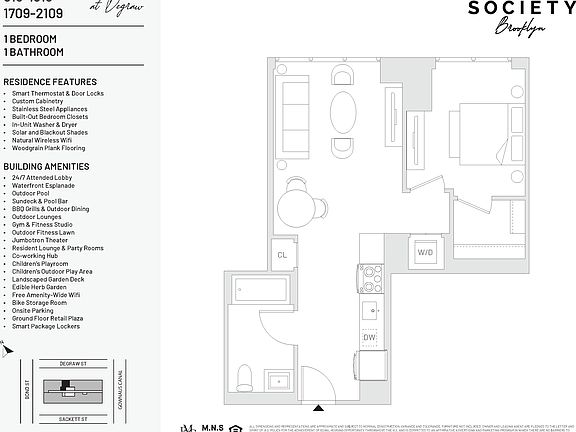 Amazing One Bedroom Available Now! GRAND OPENING 5/15! Book Your Tour Now! Now Offering 2 Months Complimentary on a 14 Month Term Welcome to Society Brooklyn! Modern Elegance with Iconic Views on Brooklyn's newest Waterfront Esplanade! Discover a new level of luxury at Society Brooklyn, where urban sophistication meets modern comfort along Brooklyn's newest waterfront esplanade. Nestled at the intersection of Carroll Gardens and Park Slope, our residences offer an unparalleled lifestyle designed for those who crave both style and substance. Our thoughtfully crafted residences blend sleek, modern finishes with warm, livable design, perfecting the balance between elevated aesthetics and everyday functionality. Expansive windows flood each home with natural light, while select units offer breathtaking skyline and canal views that bring the beauty of Brooklyn right into your living room. Residences feature: Spacious open concept layouts Custom black oak kitchen with premium stainless-steel appliances LG in-unit washer/dryer Oversized windows and wide-plank flooring Spacious Bathrooms with LED mirror light Window roller shades: white 5% light filtering with blackout in bedrooms Amazing Views Signature Amenities Fitness & Wellness: Stay active in our expansive modern fitness center, including: Cardio studio Yoga & meditation studio Training floor with a wide range of new Technogym strength and cardio equipment Ditch the private gym membership. We've got you covered for any workout need. Co-Working Hub: Multiple private offices available 24/7 for residents Designed to facilitate a comfortable and convenient work-from-home without the need to be in your home Unwind or connect in multiple resident lounges, designed for both social gatherings and quiet relaxation. Our sprawling outdoor amenity deck is your warm-weather escape: Resort-style pool with sundeck Pool bar & fire pits BBQ grills with al fresco dining setups Outdoor yoga, fitness, and lounge zones Experience modern elegance with iconic views Rooftop terrace offering panoramic, 180-degree city views Many units boast stunning skyline views Daily Convenience Attended parking garage Secure bike storage Package room & concierge services 24/7 Lobby Concierge Waterfront Park & Esplanade Access to an expansive waterfront park and esplanade with landscaped walking paths, seating areas, and stunning views A vibrant gathering place with dining options, shops, and embracing the arts community Equal Housing Opportunity. Photos, Videos, and/or 3D tours may reflect a similar unit rather than the specific listing.