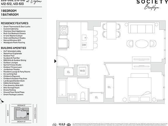 Amazing One Bedroom Available Now! GRAND OPENING! Book Your Tour Now! Now Offering 2 Month Complimentary on a 14 Month Term Welcome to Society Brooklyn! Modern Elegance with Iconic Views on Brooklyn's newest Waterfront Esplanade! Discover a new level of luxury at Society Brooklyn, where urban sophistication meets modern comfort along Brooklyn's newest waterfront esplanade. Nestled at the intersection of Carroll Gardens and Park Slope, our residences offer an unparalleled lifestyle designed for those who crave both style and substance. Our thoughtfully crafted residences blend sleek, modern finishes with warm, livable design, perfecting the balance between elevated aesthetics and everyday functionality. Expansive windows flood each home with natural light, while select units offer breathtaking skyline and canal views that bring the beauty of Brooklyn right into your living room. Residences feature: Spacious open concept layouts Custom black oak kitchen with premium stainless-steel appliances LG in-unit washer/dryer Oversized windows and wide-plank flooring Spacious Bathrooms with LED mirror light Window roller shades: white 5% light filtering with blackout in bedrooms Amazing Views Signature Amenities Fitness & Wellness: Stay active in our expansive modern fitness center, including: Cardio studio Yoga & meditation studio Training floor with a wide range of new Technogym strength and cardio equipment Ditch the private gym membership. We've got you covered for any workout need. Co-Working Hub: Multiple private offices available 24/7 for residents Designed to facilitate a comfortable and convenient work-from-home without the need to be in your home Unwind or connect in multiple resident lounges, designed for both social gatherings and quiet relaxation. Our sprawling outdoor amenity deck is your warm-weather escape: Resort-style pool with sundeck Pool bar & fire pits BBQ grills with al fresco dining setups Outdoor yoga, fitness, and lounge zones Experience modern elegance with iconic views Rooftop terrace offering panoramic, 180-degree city views Many units boast stunning skyline views Daily Convenience Attended parking garage Secure bike storage Package room & concierge services 24/7 Lobby Concierge Waterfront Park & Esplanade Access to an expansive waterfront park and esplanade with landscaped walking paths, seating areas, and stunning views A vibrant gathering place with dining options, shops, and embracing the arts community Equal Housing Opportunity. Photos, Videos, and/or 3D tours may reflect a similar unit rather than the specific listing.