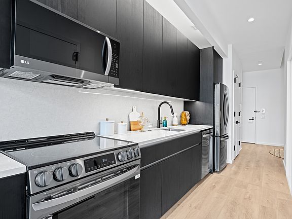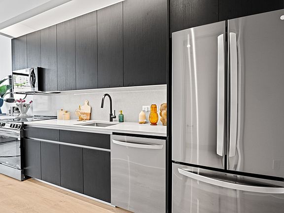 Spacious Studio with High Ceilings Available Now! Welcome to Society Brooklyn! Modern elegance with iconic views on Brooklyn's newest waterfront esplanade. Discover a new level of luxury at Society Brooklyn, where urban sophistication meets modern comfort. This studio residence with soaring high ceilings offers a bright, open, and lofty feel. Nestled at the intersection of Carroll Gardens and Park Slope, our residences deliver an unparalleled lifestyle designed for those who crave both style and substance. Our thoughtfully crafted residences blend sleek, modern finishes with warm, livable design, perfecting the balance between elevated aesthetics and everyday functionality. Expansive windows flood each home with natural light, while select units offer breathtaking skyline and canal views that bring the beauty of Brooklyn right into your living room. Residences feature: Spacious open concept layouts Custom black oak kitchen with premium stainless-steel appliances LG in-unit washer/dryer Oversized windows and wide-plank flooring Spacious Bathrooms with LED mirror light Window roller shades: white 5% light filtering with blackout in bedrooms Amazing Views Signature Amenities Fitness & Wellness: Stay active in our expansive modern fitness center, including: Cardio studio Yoga & meditation studio Training floor with a wide range of new Technogym strength and cardio equipment Ditch the private gym membership. We've got you covered for any workout need. Co-Working Hub: Multiple private offices available 24/7 for residents Designed to facilitate a comfortable and convenient work-from-home without the need to be in your home Unwind or connect in multiple resident lounges, designed for both social gatherings and quiet relaxation. Our sprawling outdoor amenity deck is your warm-weather escape: Resort-style pool with sundeck Pool bar & fire pits BBQ grills with al fresco dining setups Outdoor yoga, fitness, and lounge zones Experience modern elegance with iconic views Rooftop terrace offering panoramic, 180-degree city views Many units boast stunning skyline views Daily Convenience Attended parking garage Secure bike storage Package room & concierge services 24/7 Lobby Concierge Waterfront Park & Esplanade Access to an expansive waterfront park and esplanade with landscaped walking paths, seating areas, and stunning views A vibrant gathering place with dining options, shops, and embracing the arts community Equal Housing Opportunity. Photos, Videos, and/or 3D tours may reflect a similar unit rather than the specific listing.