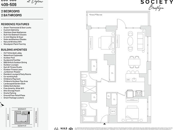 Amazing Two Bedroom Available Now! GRAND OPENING! Book Your Tour Now! Now Offering 2 Month Complimentary on a 14 Month Term Welcome to Society Brooklyn! Modern Elegance with Iconic Views on Brooklyn's newest Waterfront Esplanade! Discover a new level of luxury at Society Brooklyn, where urban sophistication meets modern comfort along Brooklyn's newest waterfront esplanade. Nestled at the intersection of Carroll Gardens and Park Slope, our residences offer an unparalleled lifestyle designed for those who crave both style and substance. Our thoughtfully crafted residences blend sleek, modern finishes with warm, livable design, perfecting the balance between elevated aesthetics and everyday functionality. Expansive windows flood each home with natural light, while select units offer breathtaking skyline and canal views that bring the beauty of Brooklyn right into your living room. Residences feature: Spacious open concept layouts Custom black oak kitchen with premium stainless-steel appliances LG in-unit washer/dryer Oversized windows and wide-plank flooring Spacious Bathrooms with LED mirror light Window roller shades: white 5% light filtering with blackout in bedrooms Amazing Views Signature Amenities Fitness & Wellness: Stay active in our expansive modern fitness center, including: Cardio studio Yoga & meditation studio Training floor with a wide range of new Technogym strength and cardio equipment Ditch the private gym membership. We've got you covered for any workout need. Co-Working Hub: Multiple private offices available 24/7 for residents Designed to facilitate a comfortable and convenient work-from-home without the need to be in your home Unwind or connect in multiple resident lounges, designed for both social gatherings and quiet relaxation. Our sprawling outdoor amenity deck is your warm-weather escape: Resort-style pool with sundeck Pool bar & fire pits BBQ grills with al fresco dining setups Outdoor yoga, fitness, and lounge zones Experience modern elegance with iconic views Rooftop terrace offering panoramic, 180-degree city views Many units boast stunning skyline views Daily Convenience Attended parking garage Secure bike storage Package room & concierge services 24/7 Lobby Concierge Waterfront Park & Esplanade Access to an expansive waterfront park and esplanade with landscaped walking paths, seating areas, and stunning views A vibrant gathering place with dining options, shops, and embracing the arts community Equal Housing Opportunity. Photos, Videos, and/or 3D tours may reflect a similar unit rather than the specific listing.
