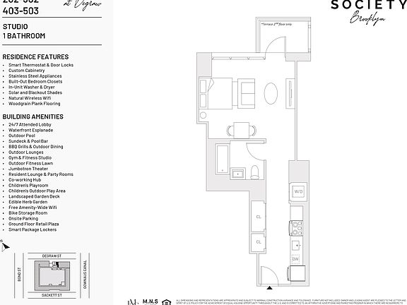 GRAND OPENING! Book Your Tour Now! Now Offering 1 Month Complimentary on a 13 Month Term Welcome to Society Brooklyn! Modern Elegance with Iconic Views on Brooklyn's newest Waterfront Esplanade! Discover a new level of luxury at Society Brooklyn, where urban sophistication meets modern comfort along Brooklyn's newest waterfront esplanade. Nestled at the intersection of Carroll Gardens and Park Slope, our residences offer an unparalleled lifestyle designed for those who crave both style and substance. Our thoughtfully crafted residences blend sleek, modern finishes with warm, livable design, perfecting the balance between elevated aesthetics and everyday functionality. Expansive windows flood each home with natural light, while select units offer breathtaking skyline and canal views that bring the beauty of Brooklyn right into your living room. Residences feature: Spacious open concept layouts Custom black oak kitchen with premium stainless-steel appliances LG in-unit washer/dryer Oversized windows and wide-plank flooring Spacious Bathrooms with LED mirror light Window roller shades: white 5% light filtering with blackout in bedrooms Amazing Views Signature Amenities Fitness & Wellness: Stay active in our expansive modern fitness center, including: Cardio studio Yoga & meditation studio Training floor with a wide range of new Technogym strength and cardio equipment Ditch the private gym membership. We've got you covered for any workout need. Co-Working Hub: Multiple private offices available 24/7 for residents Designed to facilitate a comfortable and convenient work-from-home without the need to be in your home Unwind or connect in multiple resident lounges, designed for both social gatherings and quiet relaxation. Our sprawling outdoor amenity deck is your warm-weather escape: Resort-style pool with sundeck Pool bar & fire pits BBQ grills with al fresco dining setups Outdoor yoga, fitness, and lounge zones Experience modern elegance with iconic views Rooftop terrace offering panoramic, 180-degree city views Many units boast stunning skyline views Daily Convenience Attended parking garage Secure bike storage Package room & concierge services 24/7 Lobby Concierge Waterfront Park & Esplanade Access to an expansive waterfront park and esplanade with landscaped walking paths, seating areas, and stunning views A vibrant gathering place with dining options, shops, and embracing the arts community Equal Housing Opportunity. Photos, Videos, and/or 3D tours may reflect a similar unit rather than the specific listing.