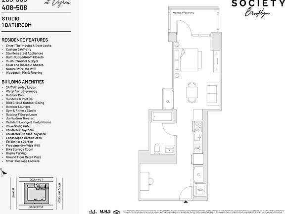 Amazing Studio Available Now! Now Offering 1.2 Month Complimentary on a 13.2 Month Term Welcome to Society Brooklyn! Modern Elegance with Iconic Views on Brooklyn's newest Waterfront Esplanade! Discover a new level of luxury at Society Brooklyn, where urban sophistication meets modern comfort along Brooklyn's newest waterfront esplanade. Nestled at the intersection of Carroll Gardens and Park Slope, our residences offer an unparalleled lifestyle designed for those who crave both style and substance. Our thoughtfully crafted residences blend sleek, modern finishes with warm, livable design, perfecting the balance between elevated aesthetics and everyday functionality. Expansive windows flood each home with natural light, while select units offer breathtaking skyline and canal views that bring the beauty of Brooklyn right into your living room. Residences feature: Spacious open concept layouts Custom black oak kitchen with premium stainless-steel appliances LG in-unit washer/dryer Oversized windows and wide-plank flooring Spacious Bathrooms with LED mirror light Window roller shades: white 5% light filtering with blackout in bedrooms Amazing Views Signature Amenities Fitness & Wellness: Stay active in our expansive modern fitness center, including: Cardio studio Yoga & meditation studio Training floor with a wide range of new Technogym strength and cardio equipment Ditch the private gym membership. We've got you covered for any workout need. Co-Working Hub: Multiple private offices available 24/7 for residents Designed to facilitate a comfortable and convenient work-from-home without the need to be in your home Unwind or connect in multiple resident lounges, designed for both social gatherings and quiet relaxation. Our sprawling outdoor amenity deck is your warm-weather escape: Resort-style pool with sundeck Pool bar & fire pits BBQ grills with al fresco dining setups Outdoor yoga, fitness, and lounge zones Experience modern elegance with iconic views Rooftop terrace offering panoramic, 180-degree city views Many units boast stunning skyline views Daily Convenience Attended parking garage Secure bike storage Package room & concierge services 24/7 Lobby Concierge Waterfront Park & Esplanade Access to an expansive waterfront park and esplanade with landscaped walking paths, seating areas, and stunning views A vibrant gathering place with dining options, shops, and embracing the arts community Equal Housing Opportunity. Photos, Videos, and/or 3D tours may reflect a similar unit rather than the specific listing.