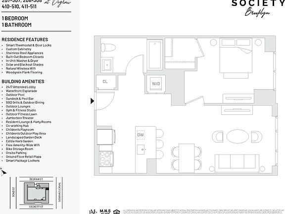 Amazing One Bedroom One Bathroom Available Now! Now Offering 2 Months Complimentary on a 14 Month Term Welcome to Society Brooklyn! Modern Elegance with Iconic Views on Brooklyn's newest Waterfront Esplanade! Discover a new level of luxury at Society Brooklyn, where urban sophistication meets modern comfort along Brooklyn's newest waterfront esplanade. Nestled at the intersection of Carroll Gardens and Park Slope, our residences offer an unparalleled lifestyle designed for those who crave both style and substance. Our thoughtfully crafted residences blend sleek, modern finishes with warm, livable design, perfecting the balance between elevated aesthetics and everyday functionality. Expansive windows flood each home with natural light, while select units offer breathtaking skyline and canal views that bring the beauty of Brooklyn right into your living room. Residences feature: Spacious open concept layouts Custom black oak kitchen with premium stainless-steel appliances LG in-unit washer/dryer Oversized windows and wide-plank flooring Spacious Bathrooms with LED mirror light Window roller shades: white 5% light filtering with blackout in bedrooms Amazing Views Signature Amenities Fitness & Wellness: Stay active in our expansive modern fitness center, including: Cardio studio Yoga & meditation studio Training floor with a wide range of new Technogym strength and cardio equipment Ditch the private gym membership. We've got you covered for any workout need. Co-Working Hub: Multiple private offices available 24/7 for residents Designed to facilitate a comfortable and convenient work-from-home without the need to be in your home Unwind or connect in multiple resident lounges, designed for both social gatherings and quiet relaxation. Our sprawling outdoor amenity deck is your warm-weather escape: Resort-style pool with sundeck Pool bar & fire pits BBQ grills with al fresco dining setups Outdoor yoga, fitness, and lounge zones Experience modern elegance with iconic views Rooftop terrace offering panoramic, 180-degree city views Many units boast stunning skyline views Daily Convenience Attended parking garage Secure bike storage Package room & concierge services 24/7 Lobby Concierge Waterfront Park & Esplanade Access to an expansive waterfront park and esplanade with landscaped walking paths, seating areas, and stunning views A vibrant gathering place with dining options, shops, and embracing the arts community Equal Housing Opportunity. Photos, Videos, and/or 3D tours may reflect a similar unit rather than the specific listing. *Price shown is Base Rent. Residents are required to pay: At Application: Application Fee ($20.00/leaseholder, nonrefundable); At Move-in: Refundable Security Deposit:$1,000 for qualified applicants and up to one months rent/unit); Monthly: Community Amenity Fee ($95.00/leaseholder- optional); Electric-3rd Party (usage-based). Please visit the property website for a full list of all optional and situational fees. Floor plans are artist's rendering. All dimensions are approximate. Actual product and specifications may vary in dimension or detail. Not all features are available in every rental home. Please see a representative for details.