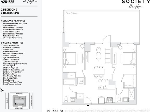 Now Offering 2 Month Complimentary on a 14 Month Term Welcome to Society Brooklyn! Modern Elegance with Iconic Views on Brooklyn's newest Waterfront Esplanade! Discover a new level of luxury at Society Brooklyn, where urban sophistication meets modern comfort along Brooklyn's newest waterfront esplanade. Nestled at the intersection of Carroll Gardens and Park Slope, our residences offer an unparalleled lifestyle designed for those who crave both style and substance. Our thoughtfully crafted residences blend sleek, modern finishes with warm, livable design, perfecting the balance between elevated aesthetics and everyday functionality. Expansive windows flood each home with natural light, while select units offer breathtaking skyline and canal views that bring the beauty of Brooklyn right into your living room. Residences feature: Spacious open concept layouts Custom black oak kitchen with premium stainless-steel appliances LG in-unit washer/dryer Oversized windows and wide-plank flooring Spacious Bathrooms with LED mirror light Window roller shades: white 5% light filtering with blackout in bedrooms Amazing Views Signature Amenities Fitness & Wellness: Stay active in our expansive modern fitness center, including: Cardio studio Yoga & meditation studio Training floor with a wide range of new Technogym strength and cardio equipment Ditch the private gym membership. We've got you covered for any workout need. Co-Working Hub: Multiple private offices available 24/7 for residents Designed to facilitate a comfortable and convenient work-from-home without the need to be in your home Unwind or connect in multiple resident lounges, designed for both social gatherings and quiet relaxation. Our sprawling outdoor amenity deck is your warm-weather escape: Resort-style pool with sundeck Pool bar & fire pits BBQ grills with al fresco dining setups Outdoor yoga, fitness, and lounge zones Experience modern elegance with iconic views Rooftop terrace offering panoramic, 180-degree city views Many units boast stunning skyline views Daily Convenience Attended parking garage Secure bike storage Package room & concierge services 24/7 Lobby Concierge Waterfront Park & Esplanade Access to an expansive waterfront park and esplanade with landscaped walking paths, seating areas, and stunning views A vibrant gathering place with dining options, shops, and embracing the arts community Equal Housing Opportunity. Photos, Videos, and/or 3D tours may reflect a similar unit rather than the specific listing.