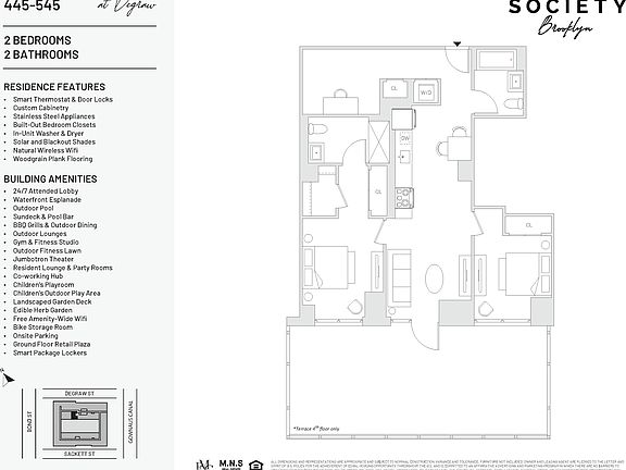 Amazing Two Bedroom, Two Bathroom with Large Home Office and High Ceilings Available Now! Now Offering 2 Months Complimentary on a 14-Month Term Welcome to Society Brooklyn! Modern elegance with iconic views on Brooklyn's newest waterfront esplanade. Discover a new level of luxury at Society Brooklyn, where urban sophistication meets modern comfort. This spacious two-bedroom, two-bathroom home features a large bonus home office and soaring high ceilings with a lofty feel, enhancing light, openness, and flexibility for your lifestyle. Nestled at the intersection of Carroll Gardens and Park Slope, our residences offer an unparalleled living experience designed for those who crave both style and substance. Our thoughtfully crafted residences blend sleek, modern finishes with warm, livable design, perfecting the balance between elevated aesthetics and everyday functionality. Expansive windows flood each home with natural light, while select units offer breathtaking skyline and canal views that bring the beauty of Brooklyn right into your living room. Residences feature: Spacious open concept layouts Custom black oak kitchen with premium stainless-steel appliances LG in-unit washer/dryer Oversized windows and wide-plank flooring Spacious Bathrooms with LED mirror light Window roller shades: white 5% light filtering with blackout in bedrooms Amazing Views Signature Amenities Fitness & Wellness: Stay active in our expansive modern fitness center, including: Cardio studio Yoga & meditation studio Training floor with a wide range of new Technogym strength and cardio equipment Ditch the private gym membership. We've got you covered for any workout need. Co-Working Hub: Multiple private offices available 24/7 for residents Designed to facilitate a comfortable and convenient work-from-home without the need to be in your home Unwind or connect in multiple resident lounges, designed for both social gatherings and quiet relaxation. Our sprawling outdoor amenity deck is your warm-weather escape: Resort-style pool with sundeck Pool bar & fire pits BBQ grills with al fresco dining setups Outdoor yoga, fitness, and lounge zones Experience modern elegance with iconic views Rooftop terrace offering panoramic, 180-degree city views Many units boast stunning skyline views Daily Convenience Attended parking garage Secure bike storage Package room & concierge services 24/7 Lobby Concierge Waterfront Park & Esplanade Access to an expansive waterfront park and esplanade with landscaped walking paths, seating areas, and stunning views A vibrant gathering place with dining options, shops, and embracing the arts community Equal Housing Opportunity. Photos, Videos, and/or 3D tours may reflect a similar unit rather than the specific listing. *Price shown is Base Rent. Residents are required to pay: At Application: Application Fee ($20.00/leaseholder, nonrefundable); At Move-in: Refundable Security Deposit:$1,000 for qualified applicants and up to one months rent/unit); Monthly: Community Amenity Fee ($95.00/leaseholder- optional); Electric-3rd Party (usage-based). Please visit the property website for a full list of all optional and situational fees. Floor plans are artist's rendering. All dimensions are approximate. Actual product and specifications may vary in dimension or detail. Not all features are available in every rental home. Please see a representative for details.