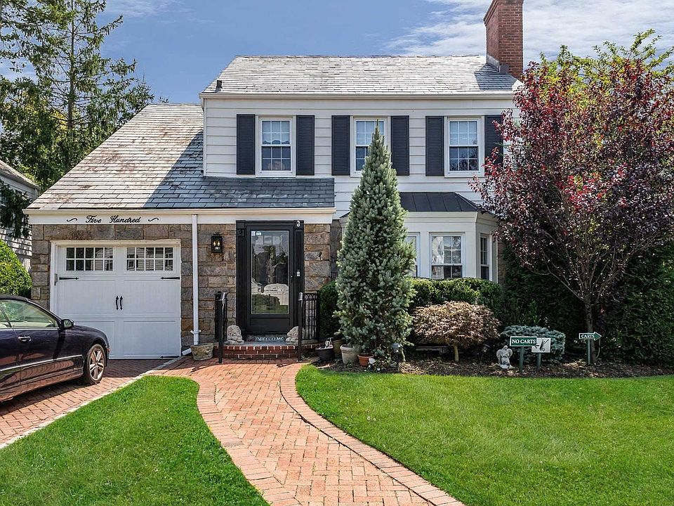 Located in the desirable Loft Estates, this 1940's slate roof colonial has been updated featuring hardwood floors & custom millwork throughout. Formal Living Rm. w. wd burning fireplace, Formal Dining Rm., EIK, Family Rm. w. gas fireplace & full Bathrm. 2nd Fl. Master Suite, 2 Bedrms & Full Bathrm. Fully fenced back yard. Close to LIRR.