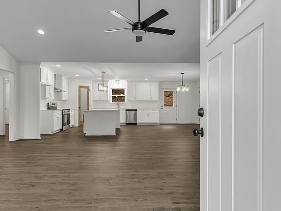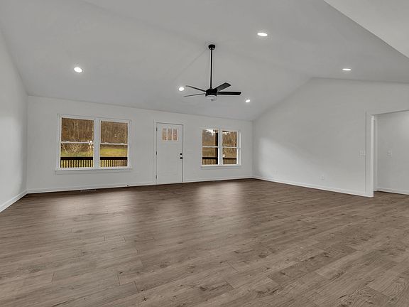 Majestic View! Up to $5,000 in incentives with preferred lender!! This one level home is 3 bedrooms & 2 baths peacefully sitting on 5.01 acres. Hardie board exterior, split floor plan, vaulted ceiling, large primary suite w/ double sinks, tiled shower & floor in baths, walk-in closet that walks through to laundry room. Custom white shaker style cabinets, hand picked gold color finishes, w/ lots of counter space, large pantry & HUGE kitchen island. Stunning details throughout MUST SEE!