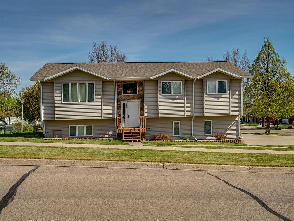 Welcome home to this great, move-in ready home in NE Mandan! This home offers many updates plus a maintenance-free steel & brick exterior! The floor plan is semi-open and bright with natural light. The large kitchen has new hardware, faucet and updated stainless steel appliances! There are also new light fixtures in the kitchen & dining room. The large living room has a south-facing picture window. There is fresh paint in the kitchen,, dining room, living room & hallway! There is also the hard-to-find 3 bedrooms on one level - including the roomy MASTER SUITE with dual closets and a 3/4 MASTER BATH w/ new comfort-height toilet! And with the MAIN FLOOR LAUNDRY there is all one-level living if you choose! The bright, daylight basement has a large family room, 4th bedroom, 3/4 bath, and NEW CARPET! Now lets talk GARAGE SPACE! The 2-stall portion is insulated, heated & offers a drain and hot/cold water with a sink and is approximately 24' deep by 27' wide (648 sf) PLUS there is the attached, insulated 3rd/4th stall/RV garage that is 14X38 (448 sf) with a 220V outlet, an insulated overhead door and a loft for additional storage! Still not enough storage and parking for your toys? There is also an RV pad with a 30 amp plug in for your camper or trailer! The landscaped yard has a sprinkler system! Call your Realtor for a showing today!