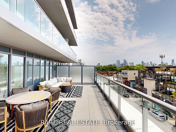 Welcome to luxury living at 500 Dupont Street! This high-end condo features stunning contemporary finishes throughout. Enjoy 2 spacious bedrooms and 1 sleek bathroom, all designed for modern comfort. The highlight is the rare giant 500 sq.ft. furnished terrace and wraparound balcony, offering breathtaking, unobstructed views of the iconic CN Tower. Excluding the penthouses, there are only 4 suites in the entire building with terraces/balconies of this size, making this home truly one-of-a-kind. Inside, the open-concept living space includes a chic lounge and dining area, with integrated and upgraded appliances in the kitchen. Wake up to the CN Tower view from your master bedroom every morning. This corner unit is part of a community rich in amenities: a state-of-the-art movie theatre, BBQ lounge, fitness centre, and meeting room. Experience the best of urban living in this exquisite Toronto condo!