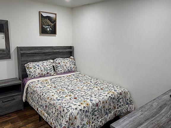 Cozy cabin in the heart of the city, fenced in for privacy. This home features one bedroom with 1 full sized bathroom. Unit is furnished has a a Queen bedroom set and cooking utensils and other items.