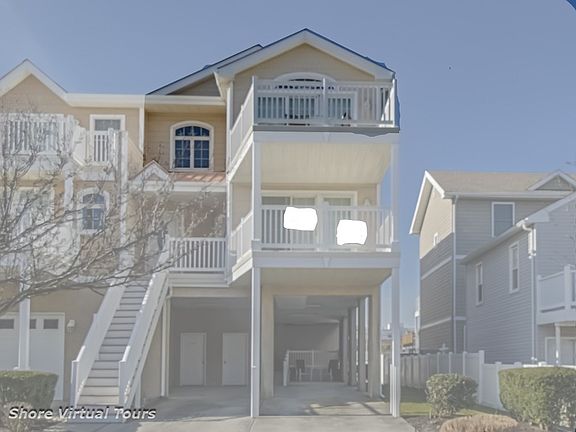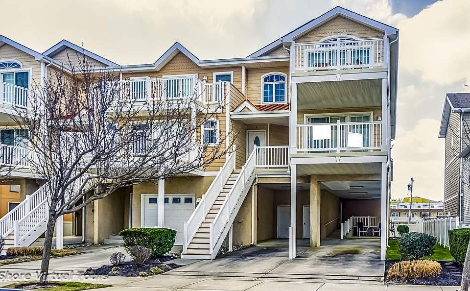 It's all about the beach! No streets to cross to get to the beach and only 2 blocks to the beginning of the Boardwalk make this THE BEST area North Wildwood has to offer. It is a true BEACH BLOCK location. This top floor corner unit is expansive, airy, and has an inviting floor plan with a cathedral ceiling which makes the great room feel even brighter. The kitchen is equipped with a beautiful center island and generous counter space. The countertops are all Corian with a seamless kitchen sink and the kitchen has a tile floor and a beautiful glass tile backsplash. Off the kitchen is a nice sized dining area and a living area with separate sitting area and a three panel slider to your Ocean View deck. The views are stunning and such a short walk to the water. There are 3 large bedrooms with plenty of room for a big family, and good sized closet space. The ground floor has a car port for 2 cars and a lockable storage room. This home is coming mostly furnished and equipped. It's time to start living your best beach life - come take a look at the place you deserve.