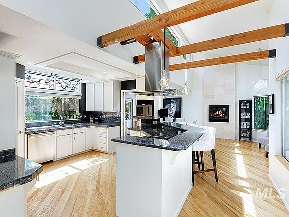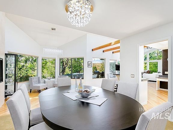 An extraordinary custom home in The Highlands! Inspiring views and incredible trees create a private and remarkable retreat in one of Boise's most sought after locations! The residence branches into three distinct levels, where scores of windows pull in the surrounding greenery & dreamy filtered light on each level. Striking lines & soaring ceilings amplify the main level, where entertaining areas effortlessly flow from indoors to outdoors between various vignettes, including a magical enclosed front courtyard set underneath a wide tree canopy. The upstairs level is dedicated to a luxurious primary suite. It is perched above the tree cover, taking in spectacular foothill views, while enjoying a private patio, sitting room, large walk-in closet & luxury bath suite. Set apart from the living area and primary suite, a second master suite, additional bedrooms, and an incredible media/entertaining room are located downstairs at the garden level, where french doors lead to the backyard and spacious patio.