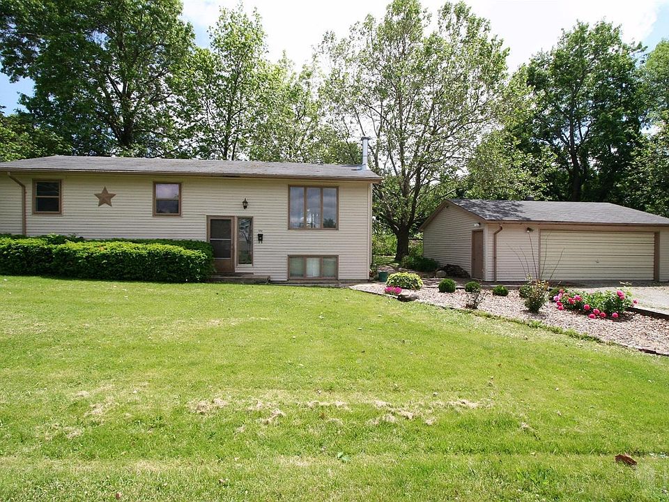 Charming split level home located on a corner lot on the south side of town close to the schools. This 3 bedroom home with 2 baths has an updated kitchen and a open dinning room living room. Full basement with extra room that could be used as a bedroom or office. This is a very spacious home and is move in ready. You will enjoy the very cozy backyard with the family deck off the dinning room. The extra large 2 car detached garage is a bonus to this beautiful home. Appliance package comes with it, along with a storage shed. This home is priced to sell and is a must see.