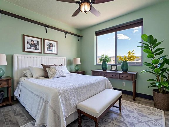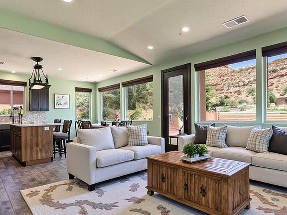 Professionally landscaped yardLarge covered patioGarden areaTile flooringBreathtaking red rock canyonSeparate laundry roomLarge center island