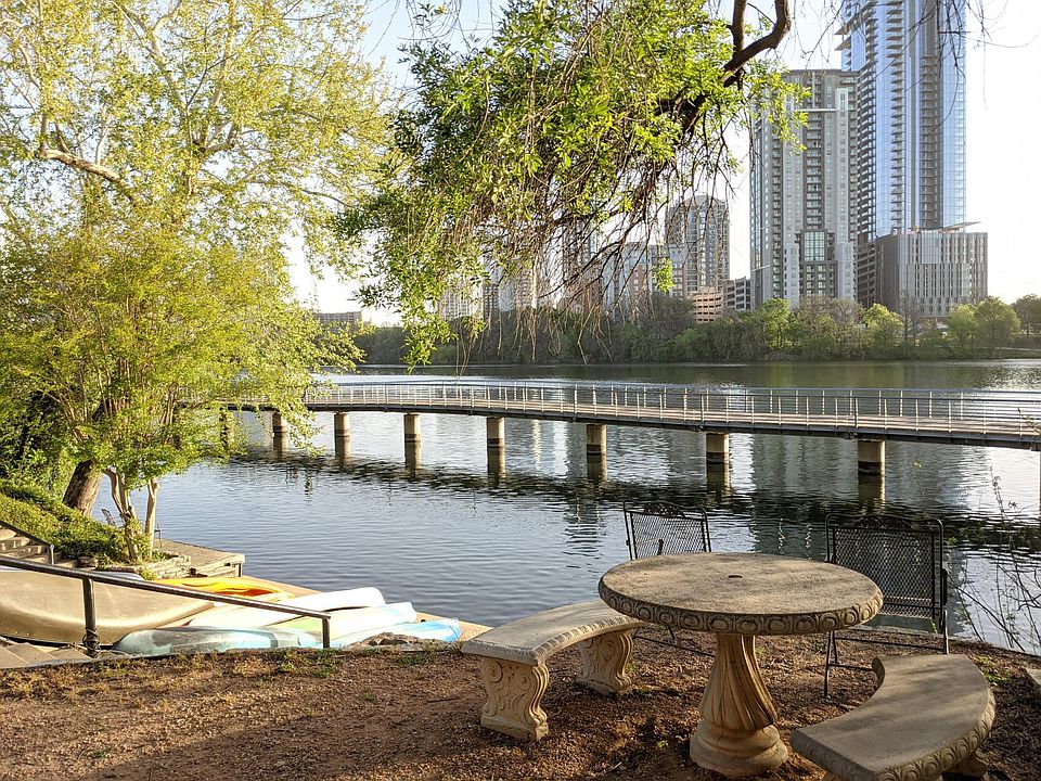 Let worries whisk away with a Boardwalk walk. Drift in dreamland on lakeside decks at sunrise and sunsets. Launch watercraft from private dock. Hold hands with the heartbeat of Austin in this hidden gem. Live close enough to everything, but far enough away to relax. Fall in love with this small, friendly gated community which gives you lakefront living on Lady Bird Lake! Bike, walk, run, and scoot at your pleasure with keyed pedestrian gates to the Austin trail system. Explore everywhere downtown, SoCo, SoLa, Barton Springs, Zilker, Auditorium Shores and more. This fully renovated first floor condo backs up to a shaded green courtyard with a grill and space to chill. Be sure to float in the pool overlooking beautiful Lady Bird Lake and the boardwalk during a summer sunset to get the full experience living here! Water included in rent. Smoking outside only. Caged pets only (eg. birds, reptiles). Reserved parking. Visitor parking. Personable management. Inquire today!