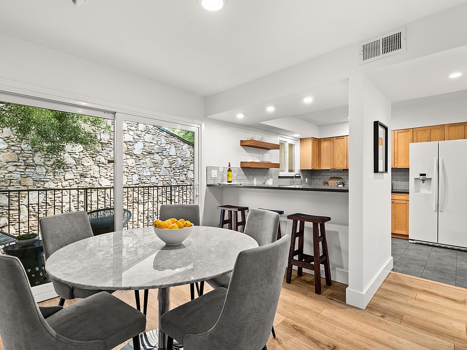 Rare THREE BEDROOM condo at the Riverwalk Condominiums in Travis Heights. This beautifully remodeled two-story condo offers modern living with a prime location adjacent to the Lady Bird Lake Boardwalk. Boasting three spacious bedrooms and two and a half bathrooms, the unit is filled with natural light, and surrounded by beautiful heritage oak trees. Interior updates include luxury vinyl flooring, blending style with durability, an enlarged laundry room, updated kitchen, and more. Enjoy outdoor living with three spacious private patios, perfect for relaxing or entertaining. Located blocks away from South Congress, this condo is perfect for those who love nature and city living, and offers the best of both worlds. As a member of the community you'll have access to two sparkling pools for those hot Texas days and a private dock, ideal for launching kayaks directly into the lake.