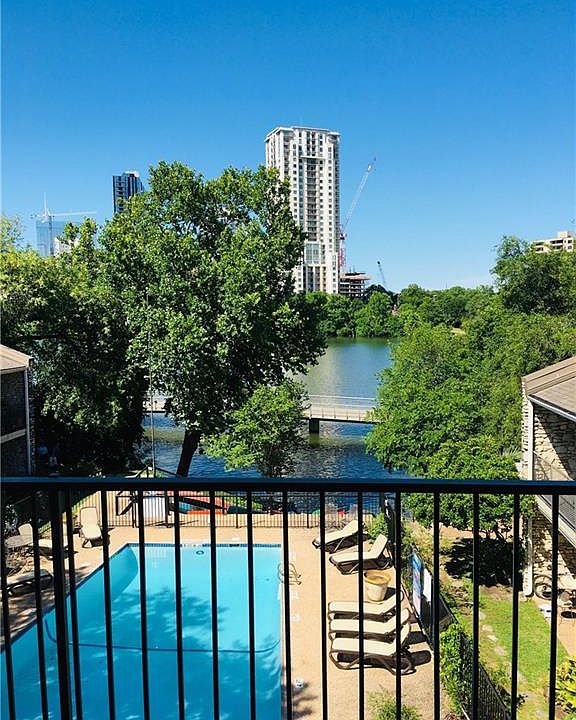 LOCATION LOCATION LOCATION Waterfront Spacious Condo 3BD/2.5BA.Move in Ready! Gated complex with access to the lake.Enjoy the kayak/ paddle board launch steps away. The property also offers picnic tables, barbecue pits, kayak, paddle board racks for nearby storage. Walking distance to iconic Austin Restaurants, Entertainment, and Endless activities, Hike and bike trails. The dining and master bedroom face the pool/lake.3 reserved parking spaces. Breathtaking Views!
