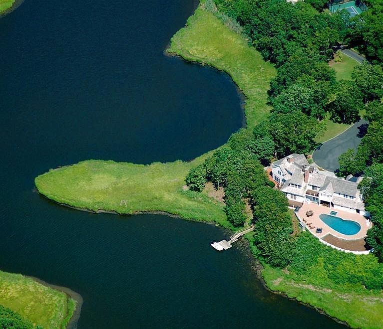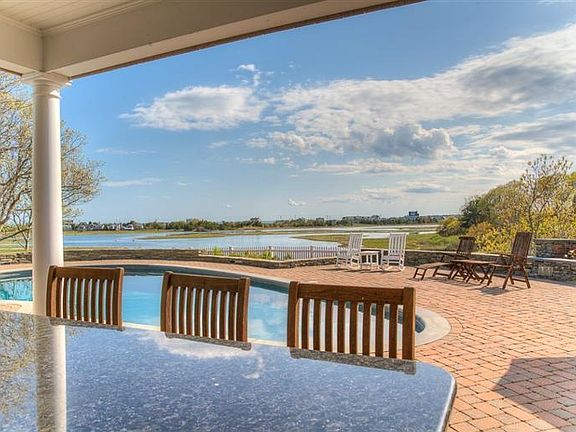 Your own private country club! This magnificent custom waterfront Cape offers all the finest amenities and features spectacular panoramic water views, a magnificent heated gunite pool & hot tub, a private dock and an extraordinary location. Privately set, this completely renovated four bedroom 5 bath home exudes all the charm that Cape Cod has to offer. 3,300 sq. ft. of quality living space offer living and dining rooms, a wonderful warm, bright family room and a state of the art granite kitchen with custom cabinets and Sub-Zero,Wolf and Miele appliances. Features include 3 wood burning brick hearth fireplaces, custom built-ins, decorative moldings, a walk-in pantry, hardwood floors and built-in sound. It's private dock, outdoor bar, built-in BBQ and fire pit and endless water views complete this exceptional waterfront Cape Cod home.