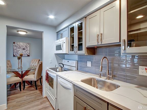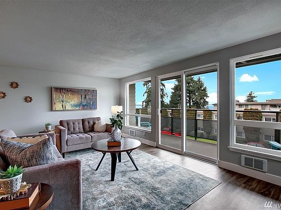 Like new 2Bd/1.75Ba view condo in the heart of Edmonds Bowl! Fully updated unit boasts custom kitchen w/gray shaker cabinets, quartz slab counters, waterproof laminate floors, Crossmore door & millwork pkg, designer vinyl & tile surround in bath, rock wall FP, new carpets, in unit laundry & more! Remodeled building features new siding & walk out balcony w/views of Puget Sound, close to freeways, ferry & shopping! Dues incl cable, community room w/pool table, exercise area & Outdoor heated pool.