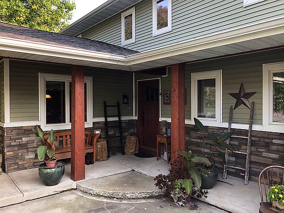 Gorgeous 2 story contemporary 4 bedroom 3.5 bath home on large corner lot. Wonderful amenities.Large living room and cozy family room with gas fireplace. Spacious kitchen and dining area. All appliances included. Culligan drinking water system. Very large screen porch leading to the outdoor patio with an attractive water feature and pond with a playground area. Large master suite. 3 car garage, lots of storage. LL has the 4th bedroom. Basement has a den with wet bar, bathroom, shop area with access to garage. New forced air/air filtration system 2015; roof and siding new in 2016, water heater in 2020, new garage doors/openers in late 2019. Many recent updates inside.