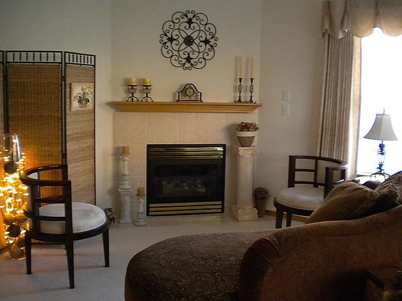 Enjoy Peace and Quiet in this active adult community residence in Homestead's Fieldstone Complex! Natural gas fireplace, two bedrooms, two bath, air conditioning, two car garage, and community clubhouse. Immediate access to walking path with waterfall from the covered sitting porch.