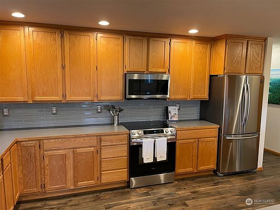 Enjoy single story living in Fieldstone, one of Homestead's sought after 55+ communities on the golf course. Home is light and bright with large picture windows, New hardwood floors thru-out Living, dining & kitchen. Spacious kitchen has eating bar, an abundance of cabinets with newer Stainless appliances. Primary Suite features walk-in closet, walk-in shower. 2nd bedroom is a nice size with access to main bathroom from bedroom. Oversized garage is very functional with additional storage. Stroll to the community clubhouse and for more adventure, entry to the Canadian border is just minutes away! Do not miss this opportunity!