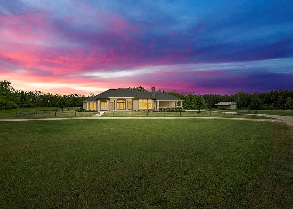 Contemporary design. Wall to wall travertine fireplace. Full kennel facility.